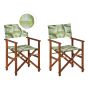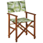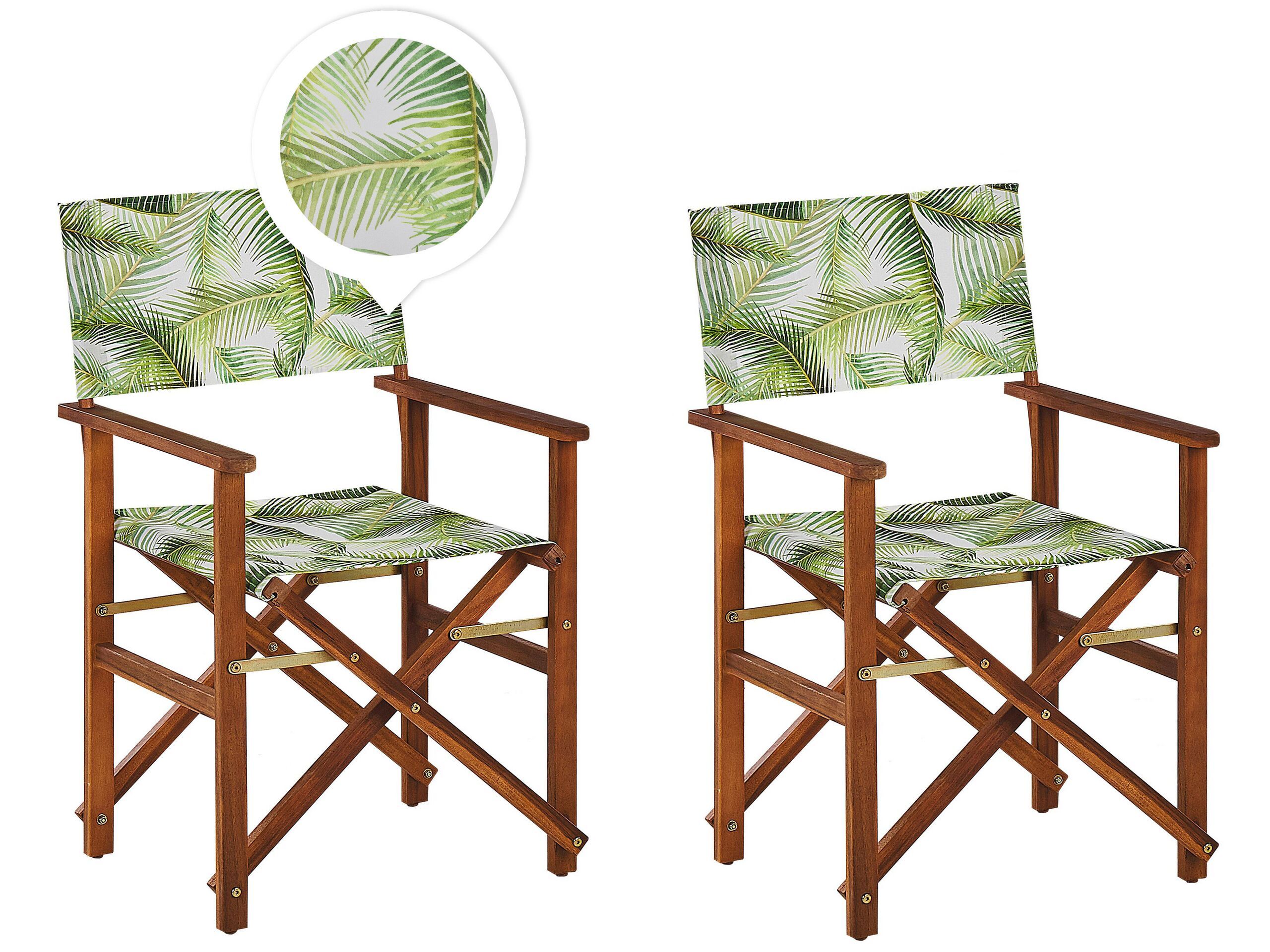 Set of 2 Acacia Folding Chairs and 2 Replacement Fabrics Dark Wood with Grey / Tropical Leaves Pattern CINE
