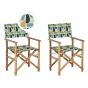 Set of 2 Acacia Folding Chairs and 2 Replacement Fabrics Light Wood with Off-White / Geometric Pattern CINE