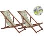 Set of 2 Acacia Folding Deck Chairs and 2 Replacement Fabrics Dark Wood with Off-White / Yellow and Grey Pattern ANZIO