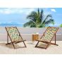 Set of 2 Acacia Folding Deck Chairs and 2 Replacement Fabrics Dark Wood with Off-White / Yellow Floral Pattern ANZIO