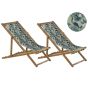 Set of 2 Acacia Folding Deck Chairs and 2 Replacement Fabrics Light Wood with Off-White / Pelican Pattern ANZIO