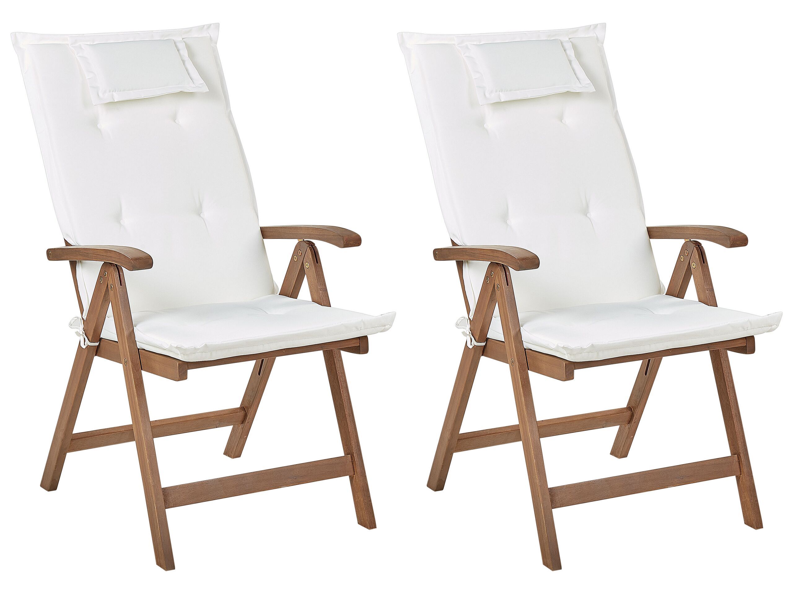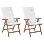 Set of 2 Acacia Wood Garden Folding Chairs Dark Wood with Off-White Cushions AMANTEA