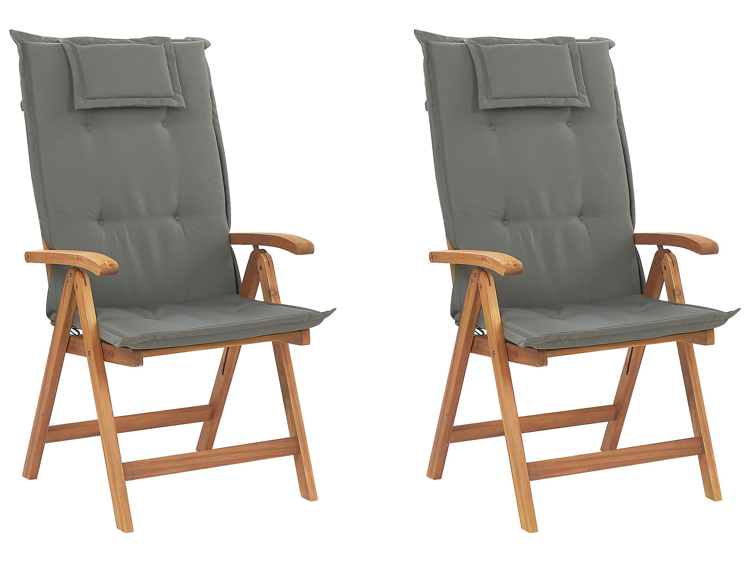 Set of 2 Acacia Wood Garden Folding Chairs with Graphite Grey Cushions JAVA