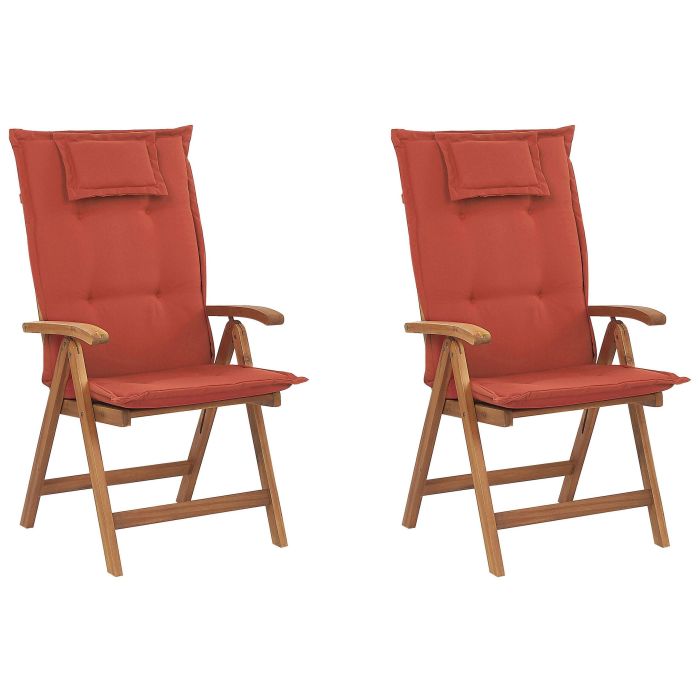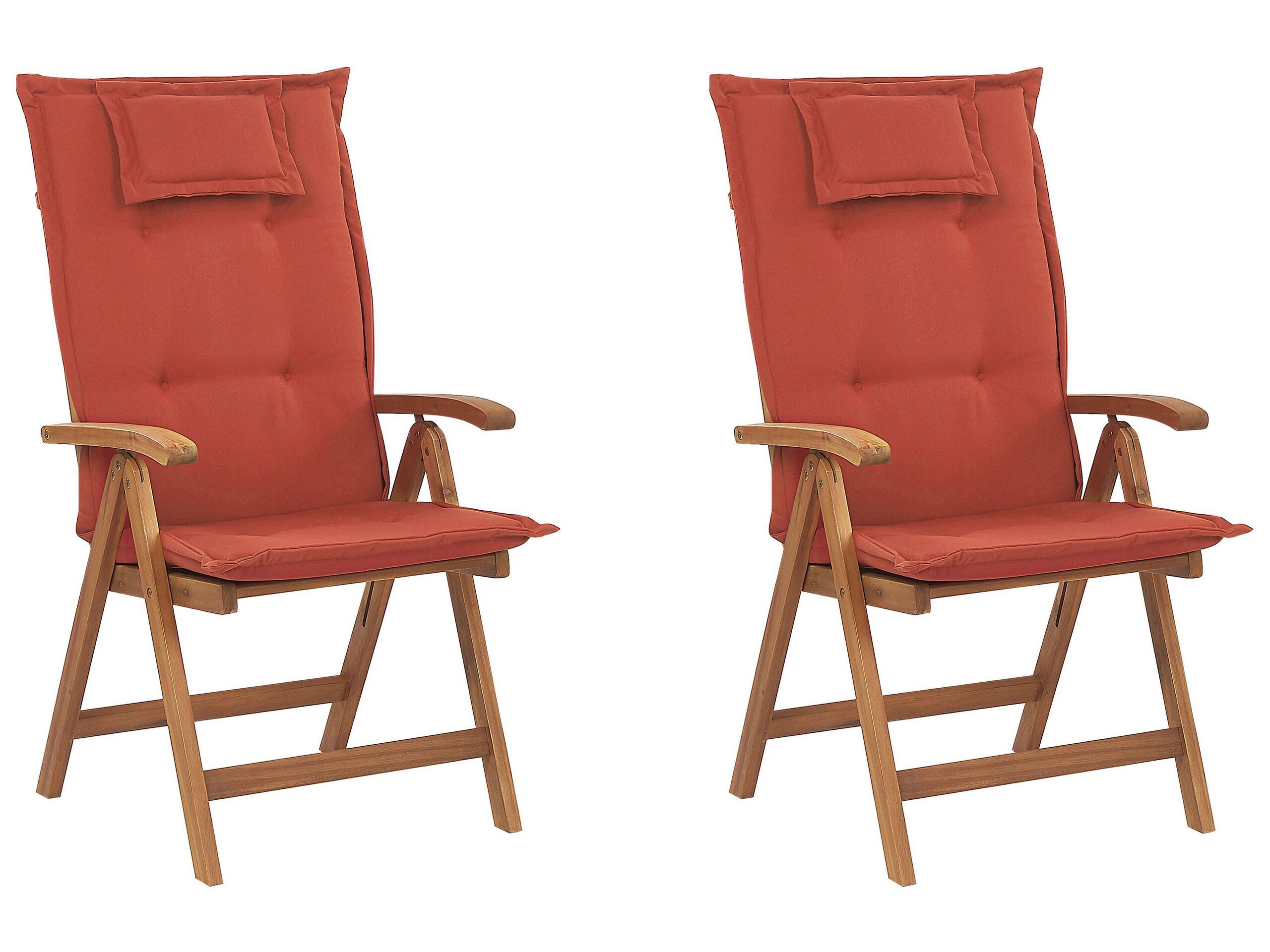 Set of 2 Acacia Wood Garden Folding Chairs with Red Cushions JAVA