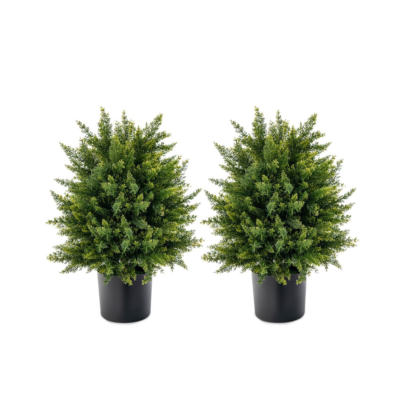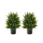 Set of 2 Artificial Cedar Topiary Ball Trees with Cement Pot