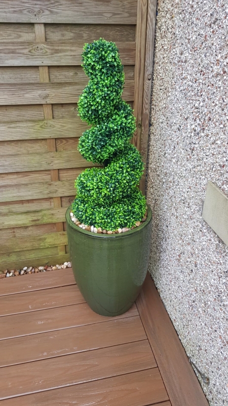 Set of 2 Artificial Plants, Topiary Spiral Boxwood Trees with Pot, for Home Indoor Outdoor Decor, 90cm