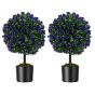 Set of 2 Artificial Purple Rose Topiary Ball Trees 55cm Faux Boxwood Ball Tree-Purple
