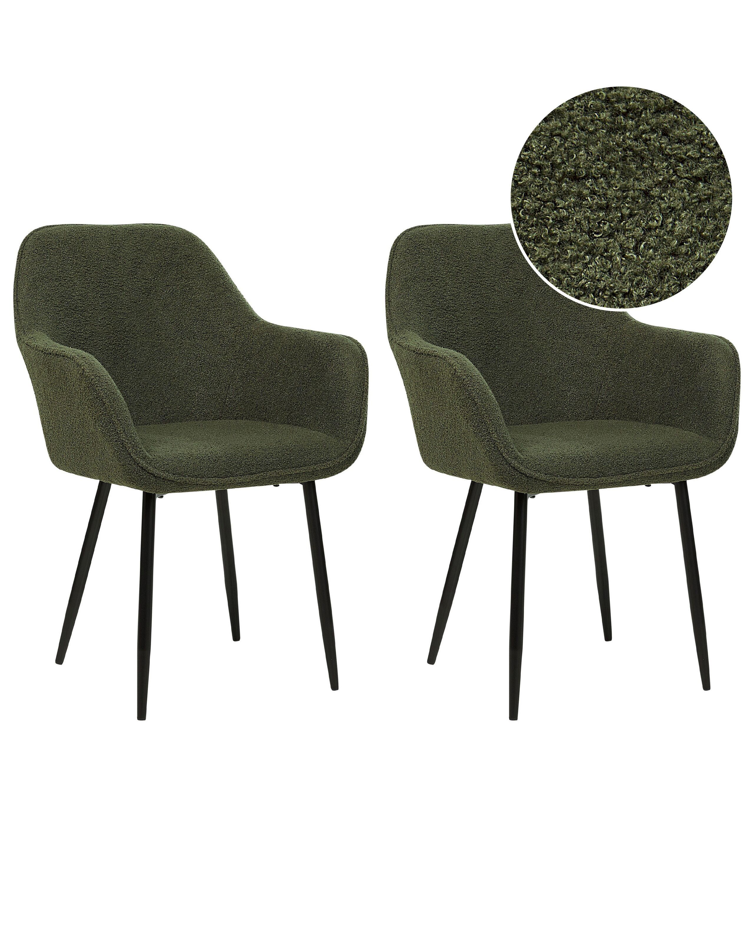 Set of 2 Boucle Dining Chairs Dark Green ALDEN