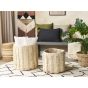 Add these multifunctional baskets to your living room or bathroom to enhance them with boho style and equip the room with extra storage space. As both pieces are crafted out of cotton and wool, they are durable and don't require daily maintenance. Their sides are adorned with decorative fringes, which are certainly going to turn heads, and their beige colour makes them easy to fit for various different decor styles. Details: Color: Beige. Main material: Cotton. Additional material: Wool. Material Composition: 80% Cotton, 20% Wool Weight: 2 Assembly: Does Not Require Assembly Overall Dimensions: 45x45x45