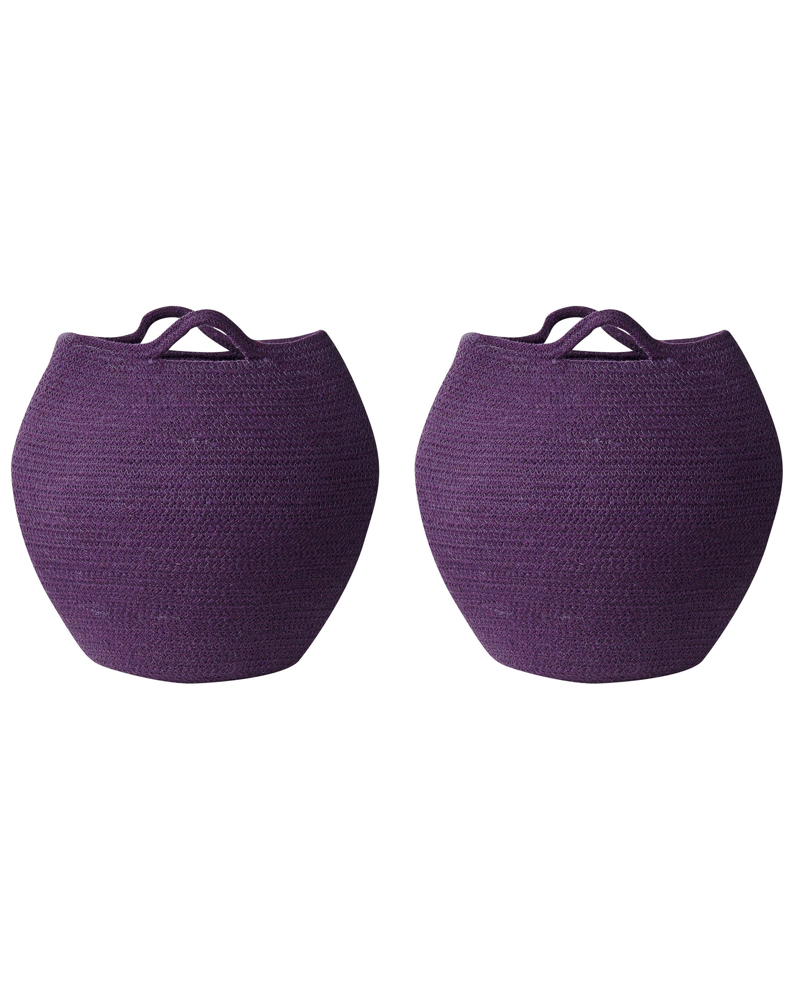This set of two storage baskets is the perfect solution to keep your flat organised in a very stylish way. The products are hand-made from good quality cotton, which guarantees their natural character, perfectly matching many interior styles. Place baskets in the living room or bedroom and all the blankets or pillows will find their place. Details: Color: Violet. Main material: Cotton. Material Composition: 100% Cotton Weight: 0.5 Assembly: Does Not Require Assembly Overall Dimensions: 30x30x30