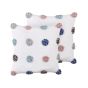 This set of decorative pillows will surely elevate the look of your everyday space or your children's bedroom. Handcrafted out of cotton in white colour, combined with multicoloured pom poms, these cushions are an attention drawing addition to any room. Thanks to used material, they are very durable and pleasant to touch, while also being easy to clean thanks to removable covers. Details: Color: White, Multicolour. Main material: Cotton. Material Composition: 100% Cotton Assembly: Does Not Require Assembly