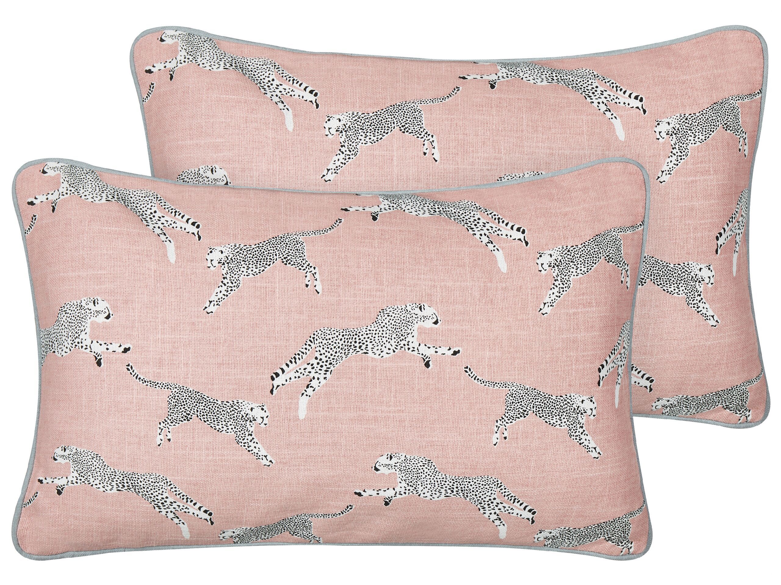 Set of 2 Cotton Cushions Cheetah Motif 30x50cm Pink