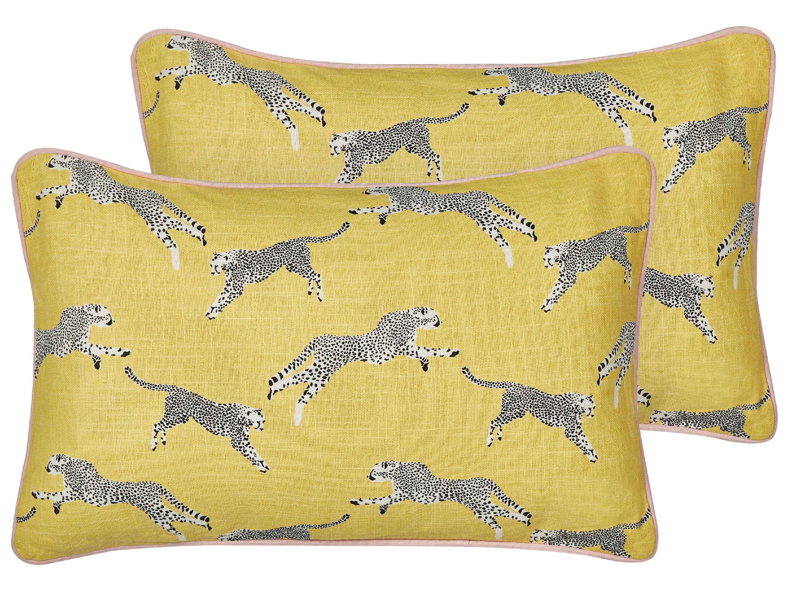 Set of 2 Cotton Cushions Cheetah Motif 30x50cm Yellow