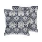 Set of 2 Cotton Cushions Damask Pattern 45x45cm White and Blue