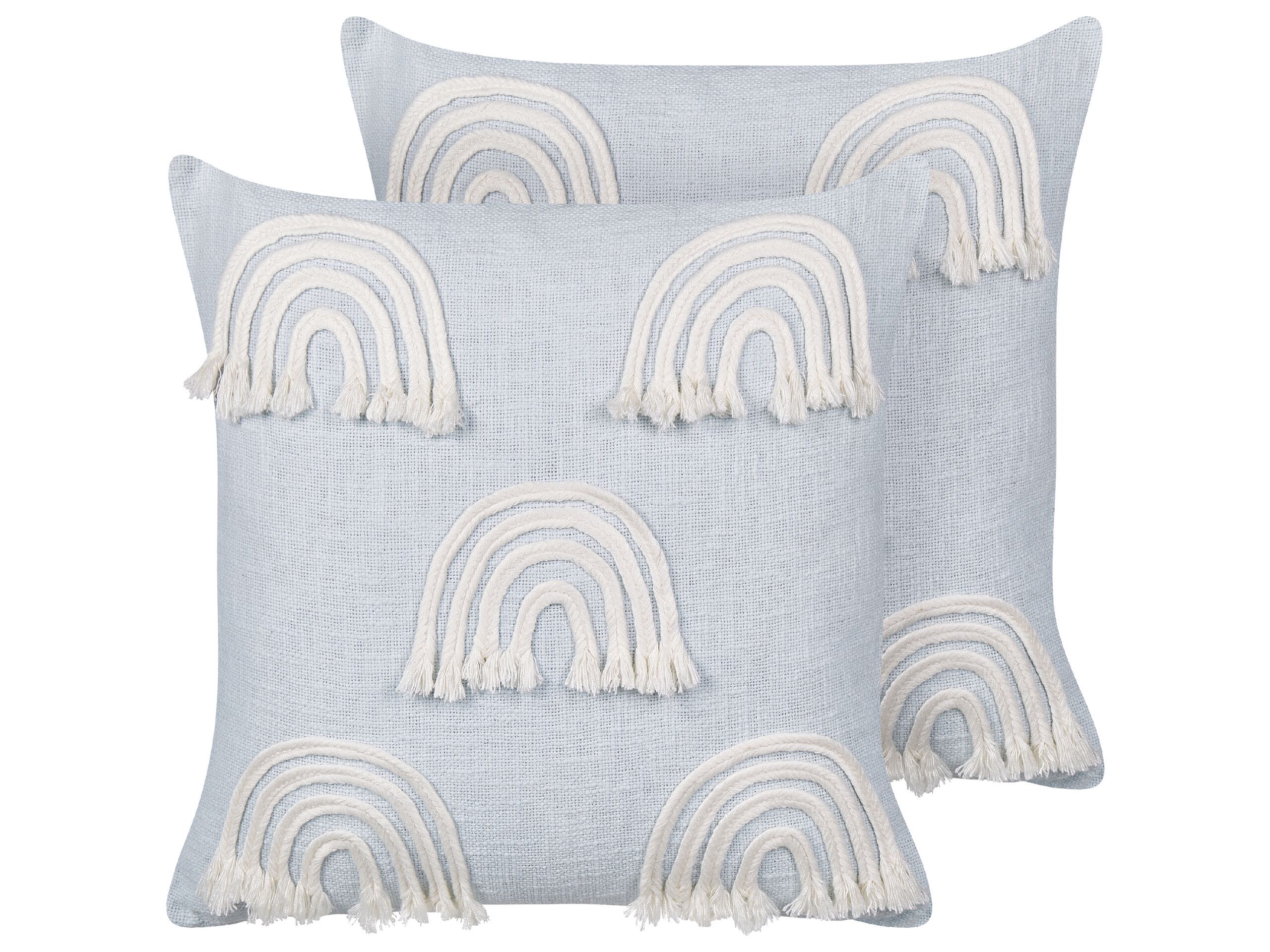 Set of 2 Cotton Cushions Embroidered Rainbows 45x45cm Light Blue