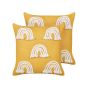 Set of 2 Cotton Cushions Embroidered Rainbows 45x45cm Yellow