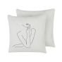 Set of 2 Cotton Cushions Female Body Line Art 45x45cm White