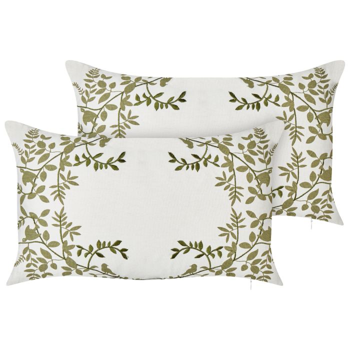 Set of 2 Cotton Cushions Floral Pattern 30x50cm White and Green