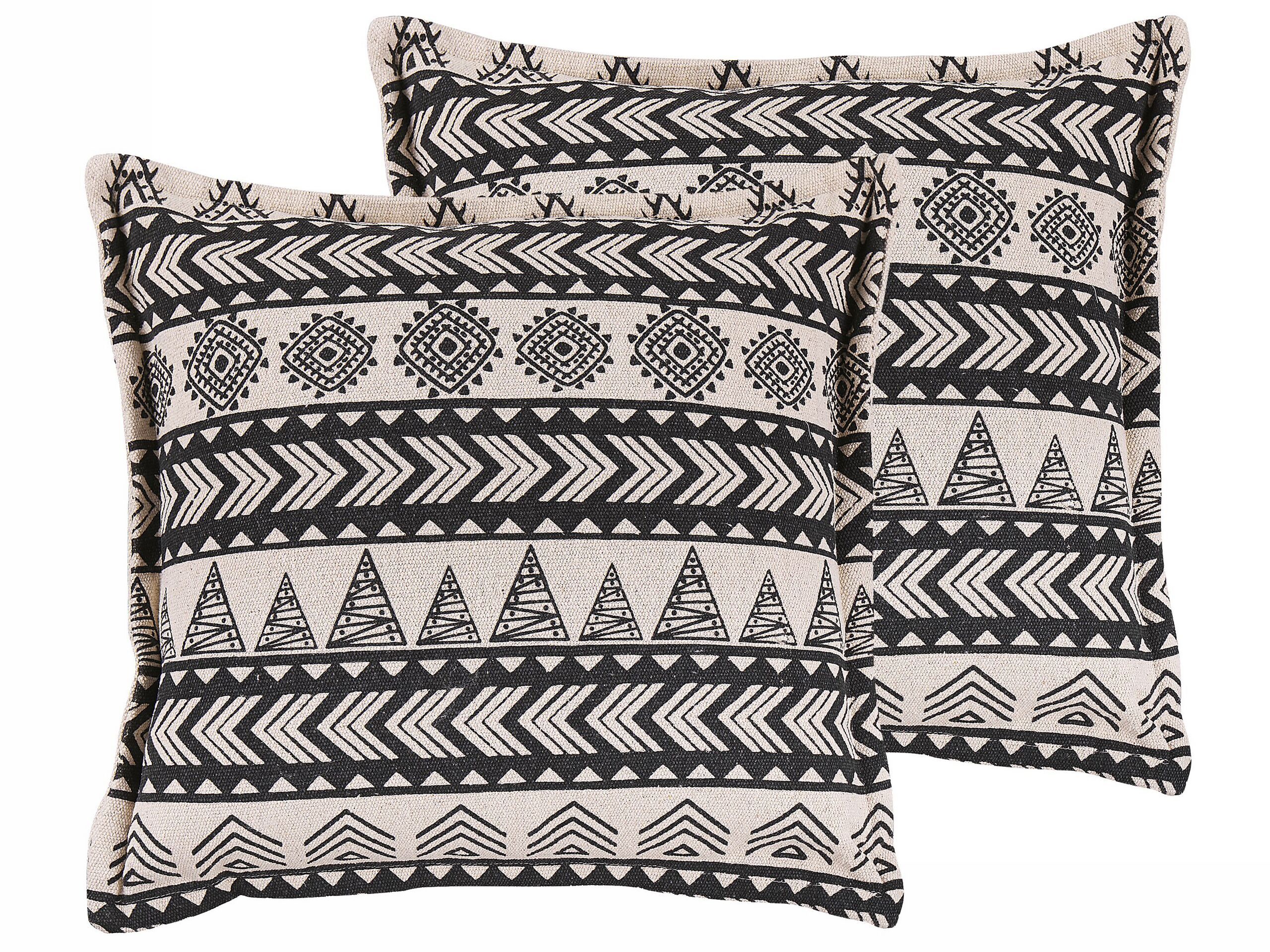 Set of 2 Cotton Cushions Geometric Pattern 45x45cm Beige and Black