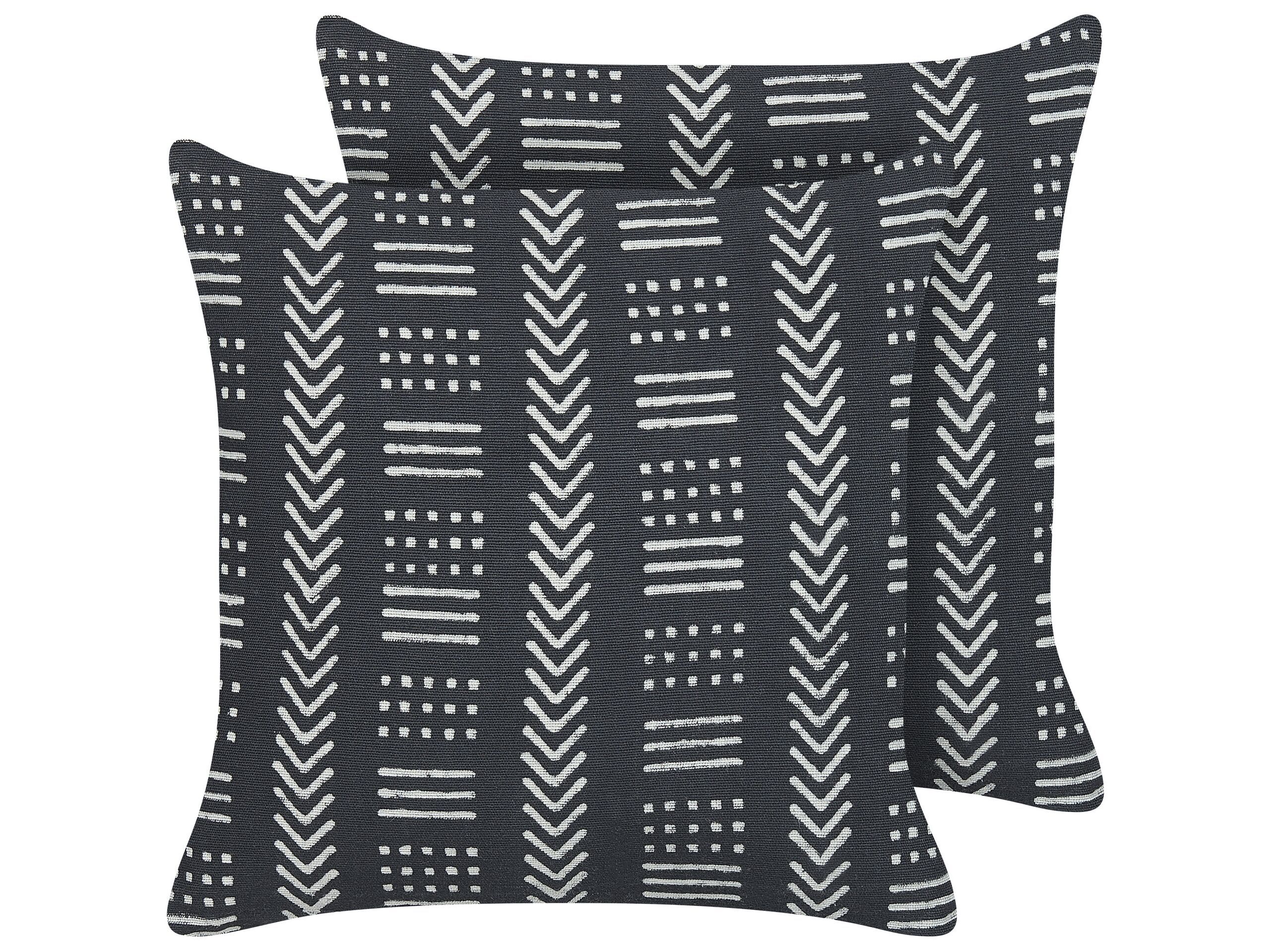 Set of 2 Cotton Cushions Geometric Pattern 45x45cm Black and White