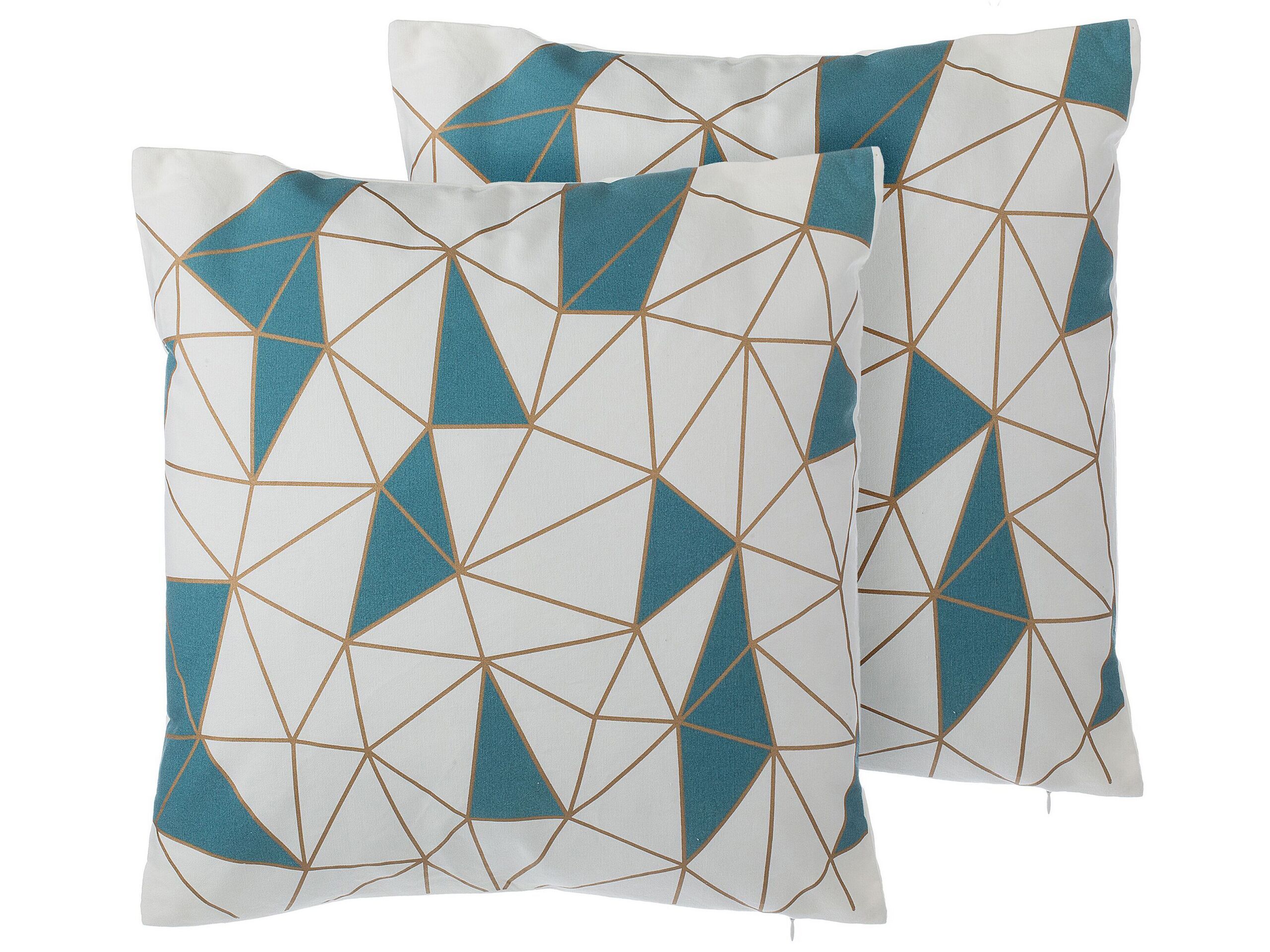 Set of 2 Cotton Cushions Geometric Pattern 45x45cm Blue