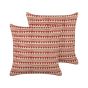 Set of 2 Cotton Cushions Geometric Pattern 45x45cm Red and Beige