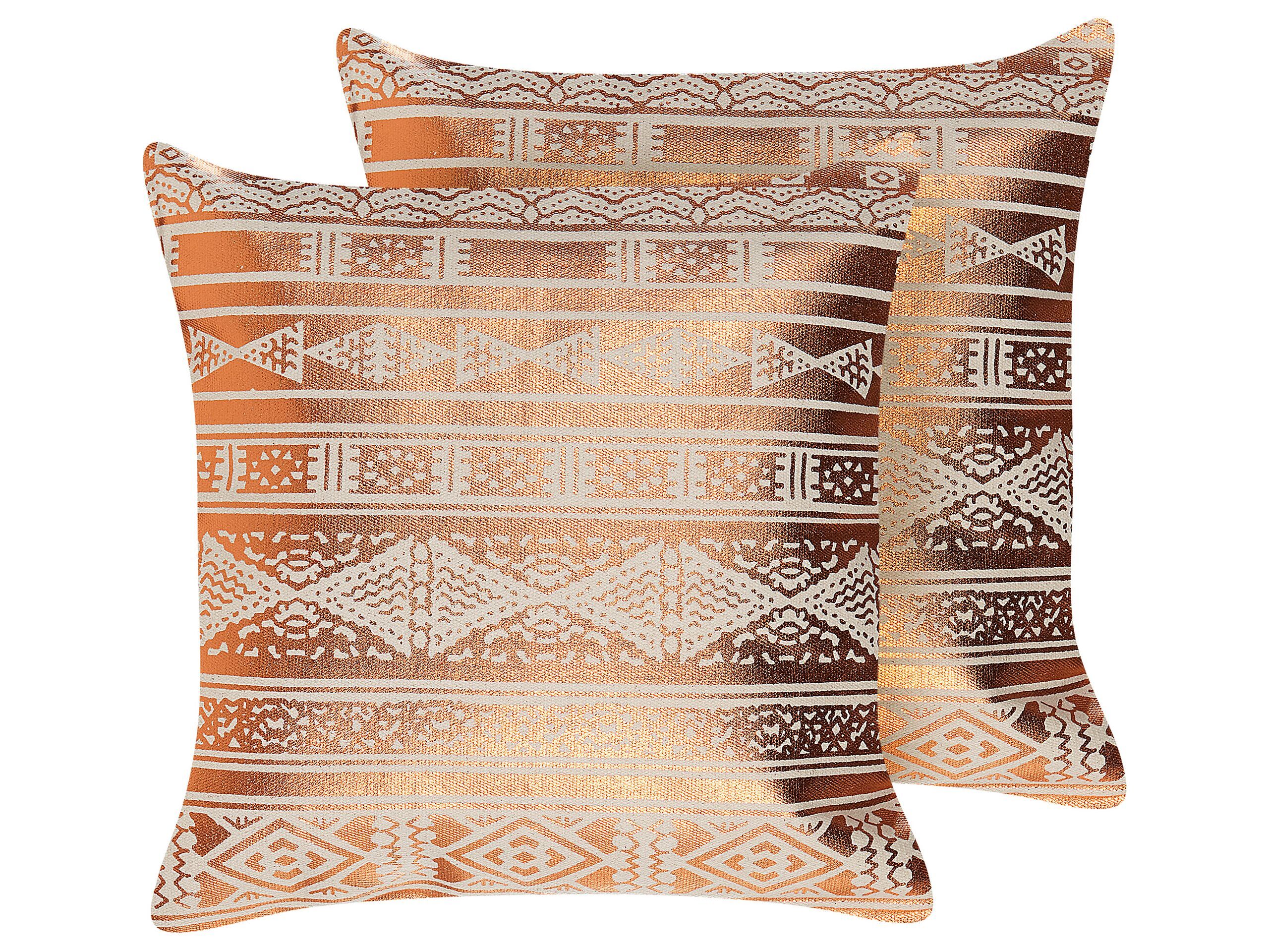 Set of 2 Cotton Cushions Geometric Pattern 50x50cm Copper