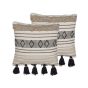 Set of 2 Cotton Cushions Geometric Pattern with Tassels 45x45cm Beige and Black