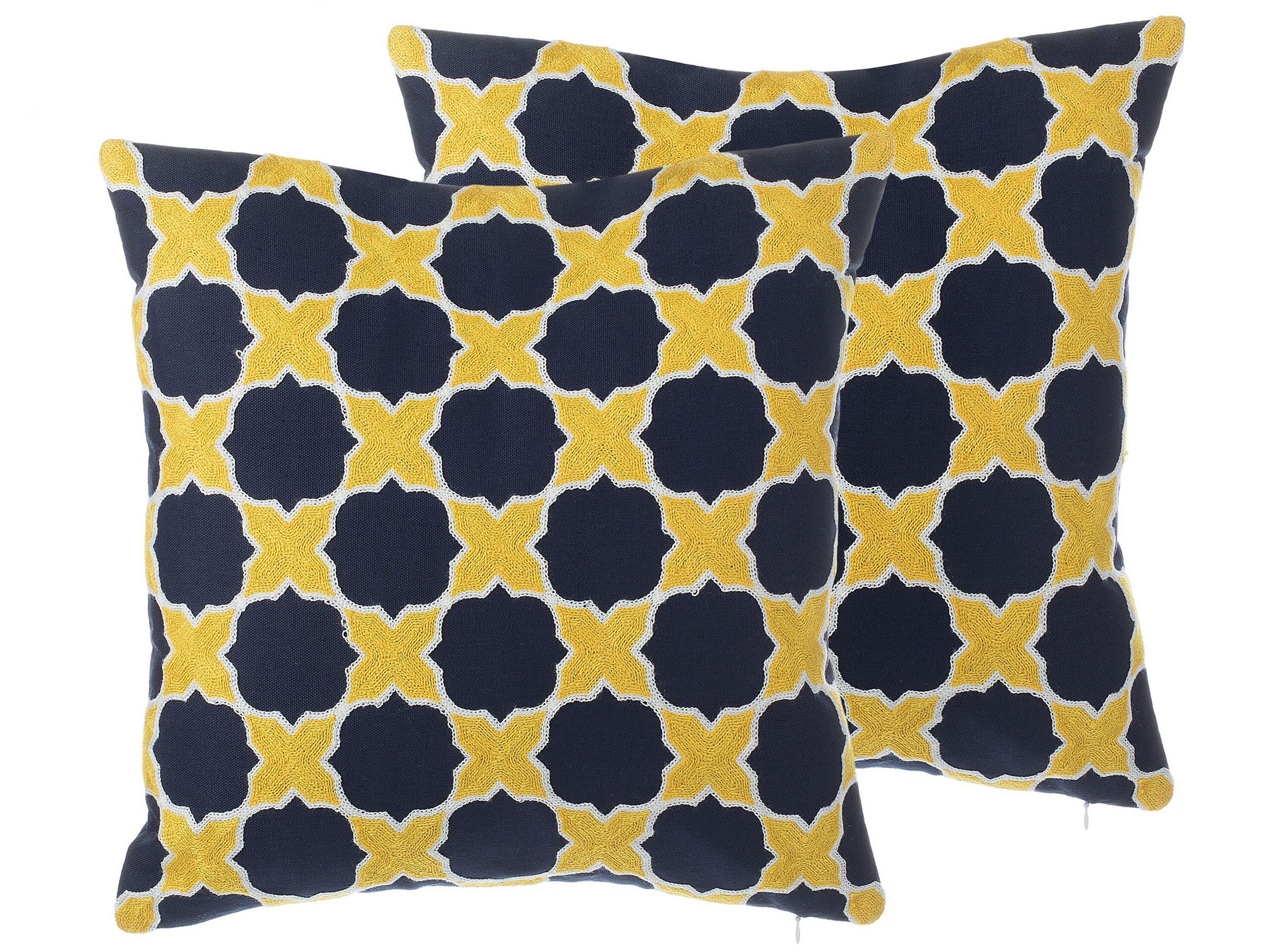 Set of 2 Cotton Cushions Quatrefoil Pattern 45x45cm Blue and Yellow