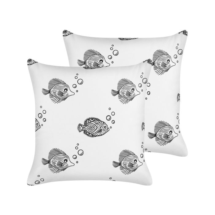 Set of 2 Cotton Kids Cushions Fish Print 45x45cm White