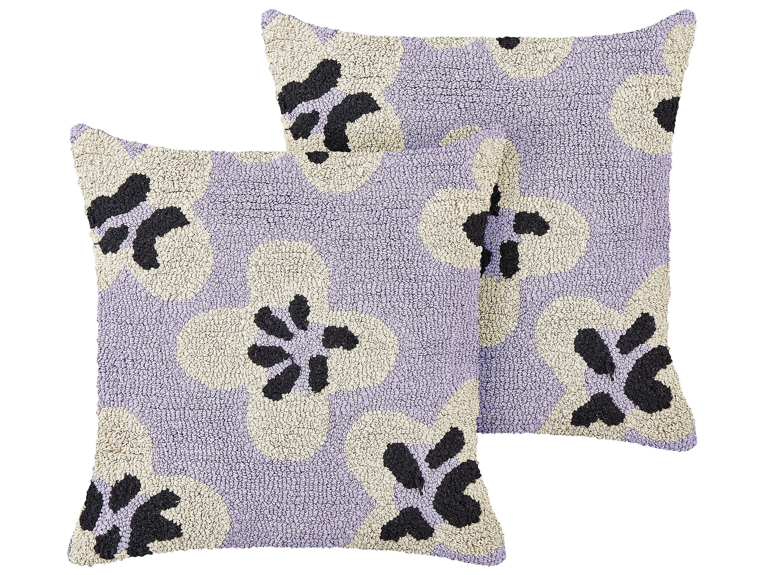 Set of 2 Cotton Kids Cushions Flowers Pattern 45x45cm Purple