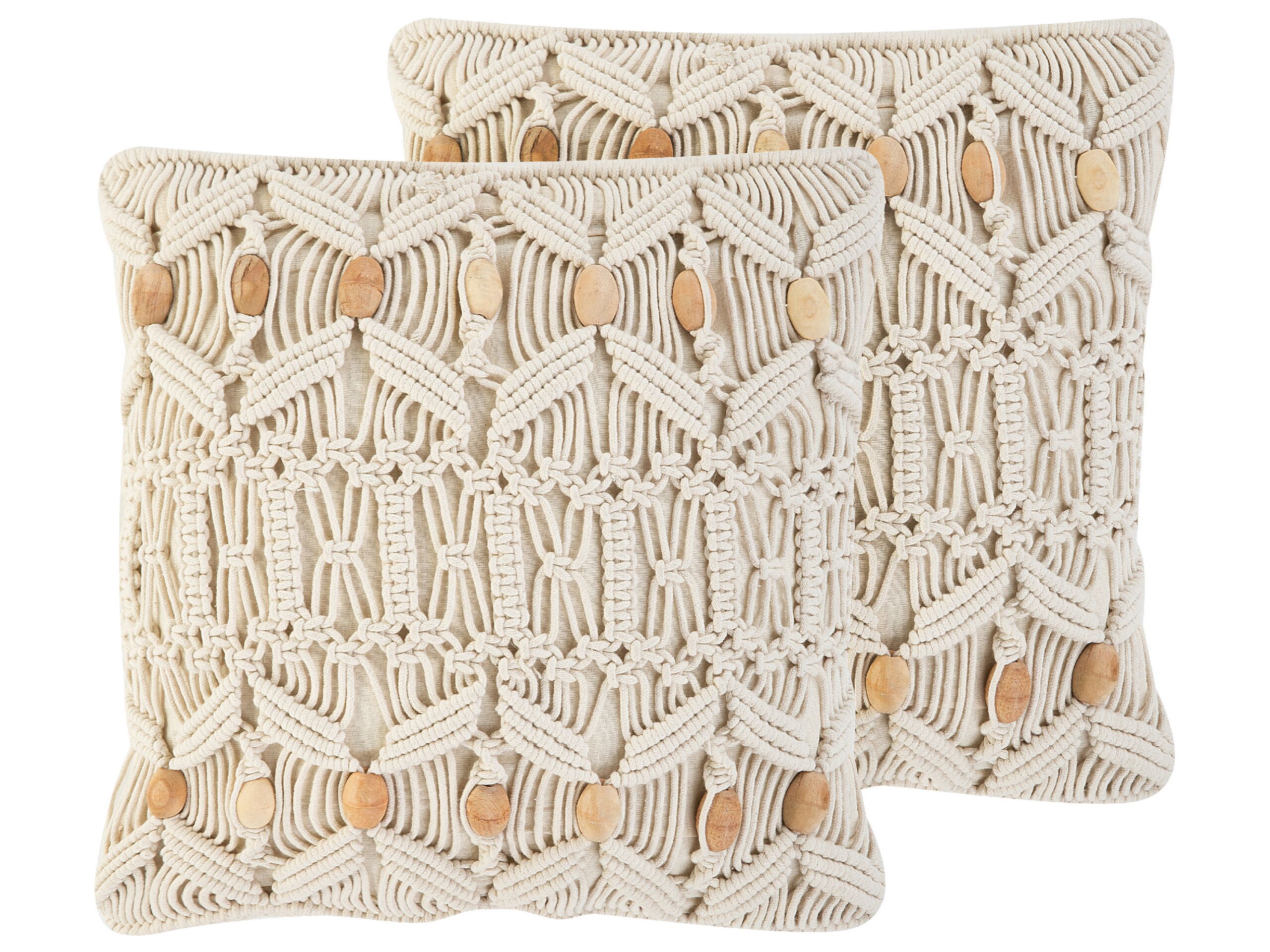 Set of 2 Cotton Macrame Cushions 45x45cm Beige