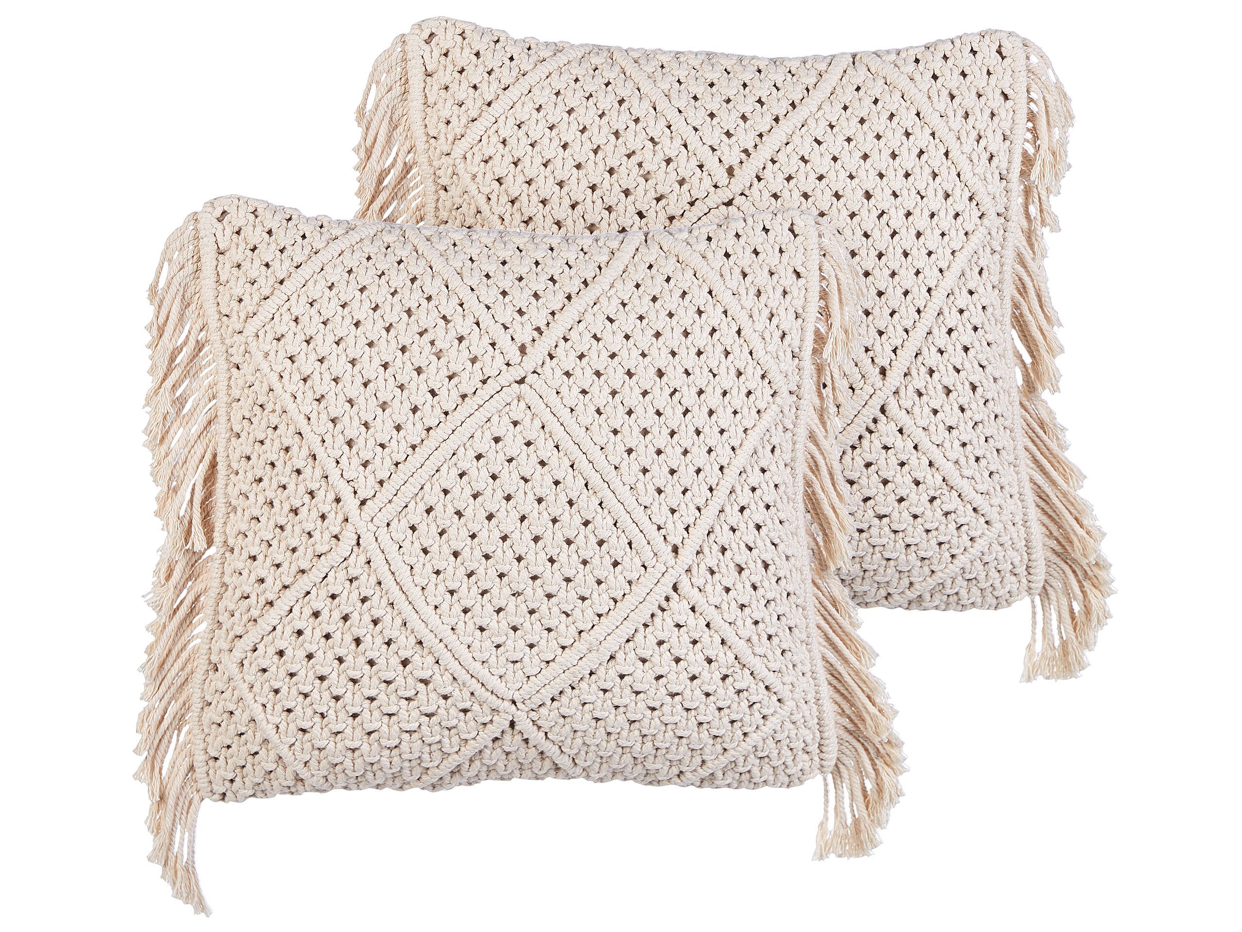Set of 2 Cotton Macrame Cushions with Tassels 45x45cm Beige