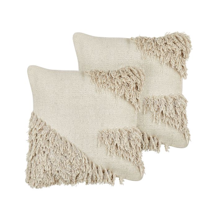 Enhance your living space with this delightful duo of decorative pillows, encased in soft cotton pillowcases boasting an alluring texture. Crafted with intricate hand-made tufted details, these pillows effortlessly command attention on any sofa or couch. Their understated yet sophisticated hues render them an ideal accompaniment to the aesthetics of a contemporary home setting. Details: Color: Beige. Main material: Cotton. Material Composition: 100% Cotton