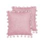 This set of decorative cushions is going to elevate your space with modern vibe. Handmade out of durable, pleasant to touch polyester, both cushions have a chenille-like texture and removable cases, so their maintenance is a breeze. Their timeless, pink colour, combined with tassels pompoms, makes them stand out when placed on the sofa or bed. Details: Color: Pink. Main material: Polyester. Material Composition: 100% Polyester