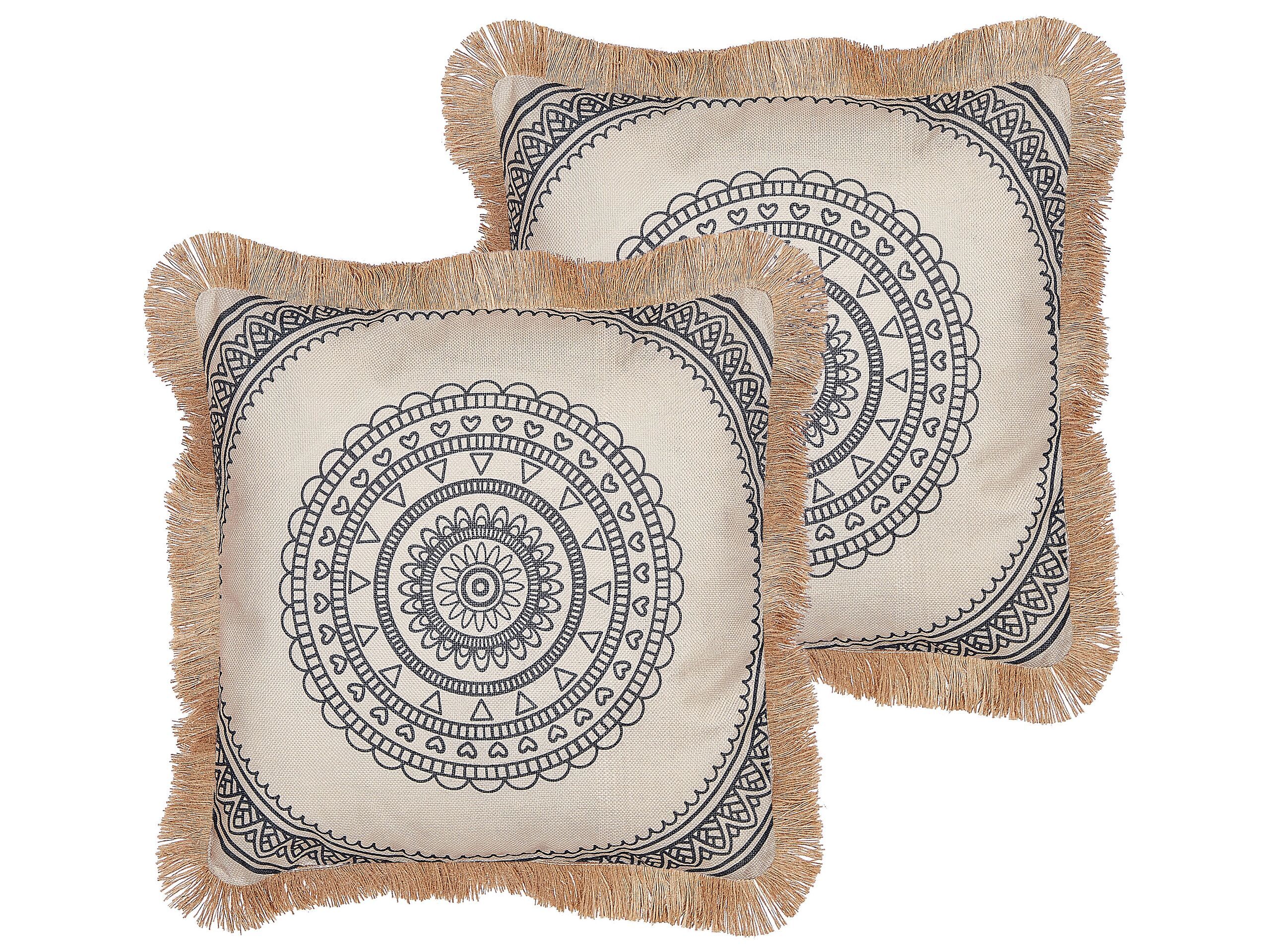 Set of 2 Cushions Boho Motif 45x45cm Beige and Black