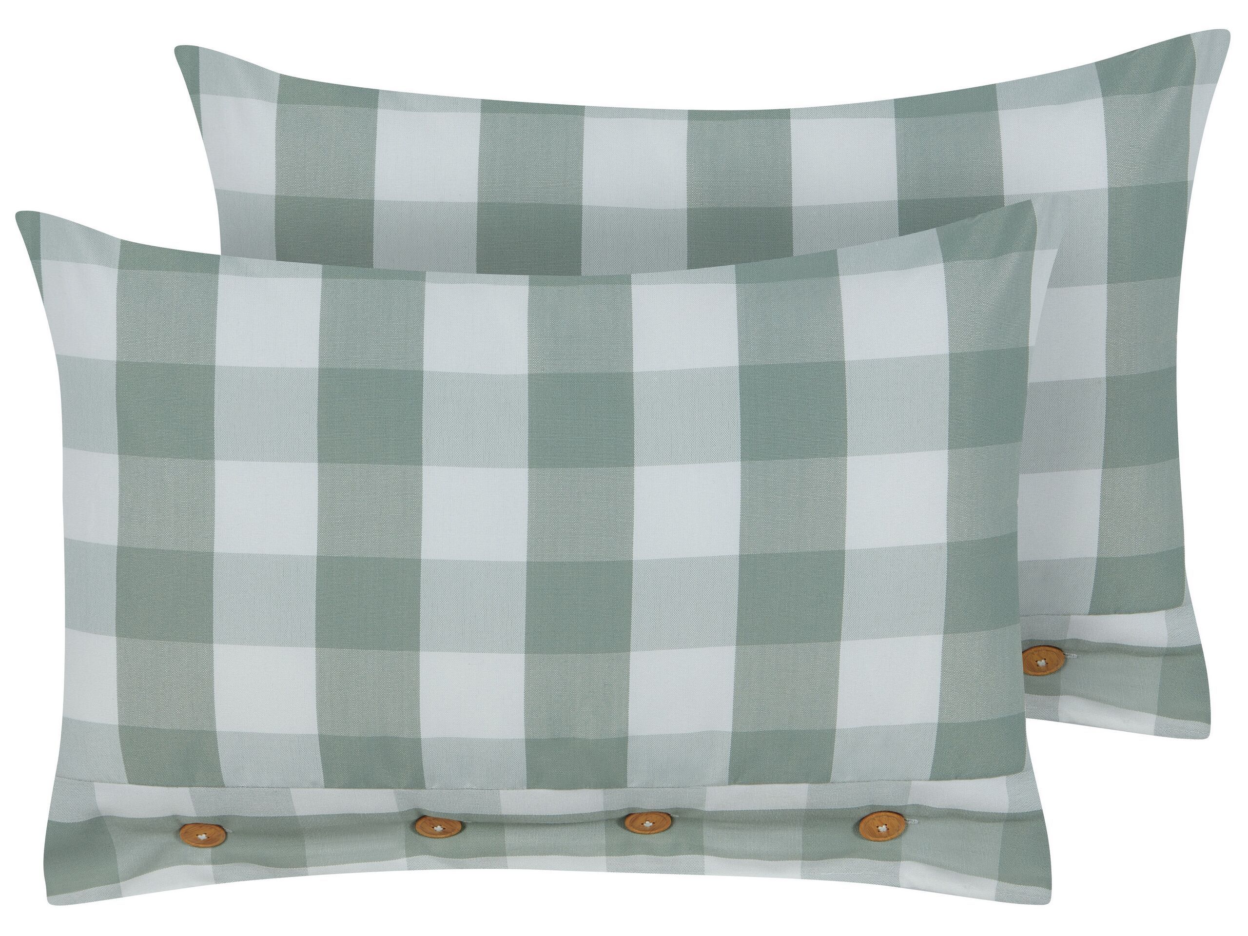 Revitalize your bedroom or living room with a cosy cottage feel using this delightful check scatter cushions set. With its vintage-style buttons, it brings a dash of traditional flair and warmth to your space. These cushions not only brighten up any décor but also enhance comfort, making them a perfect addition to your home. Details: Color: Green, White. Main material: Polyester. Additional material: Cotton. Material Composition: 90% Polyester, 10% Cotton