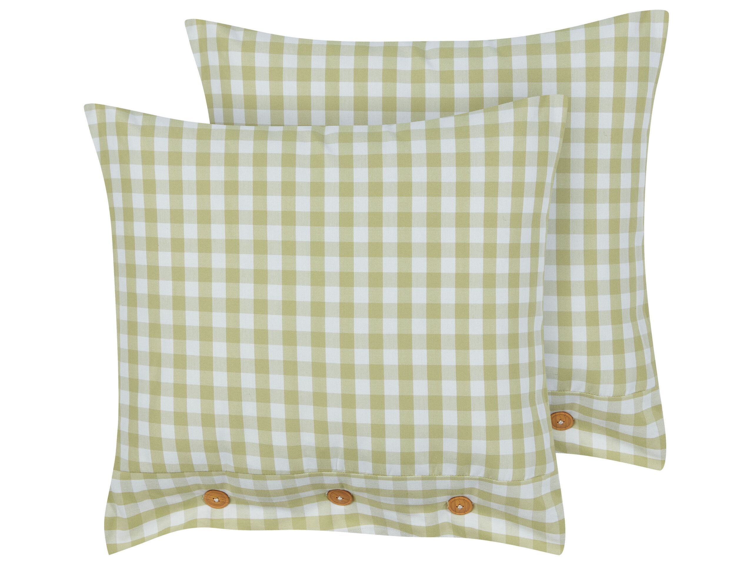 Set of 2 Cushions Chequered Pattern 45x45cm Olive Green and White