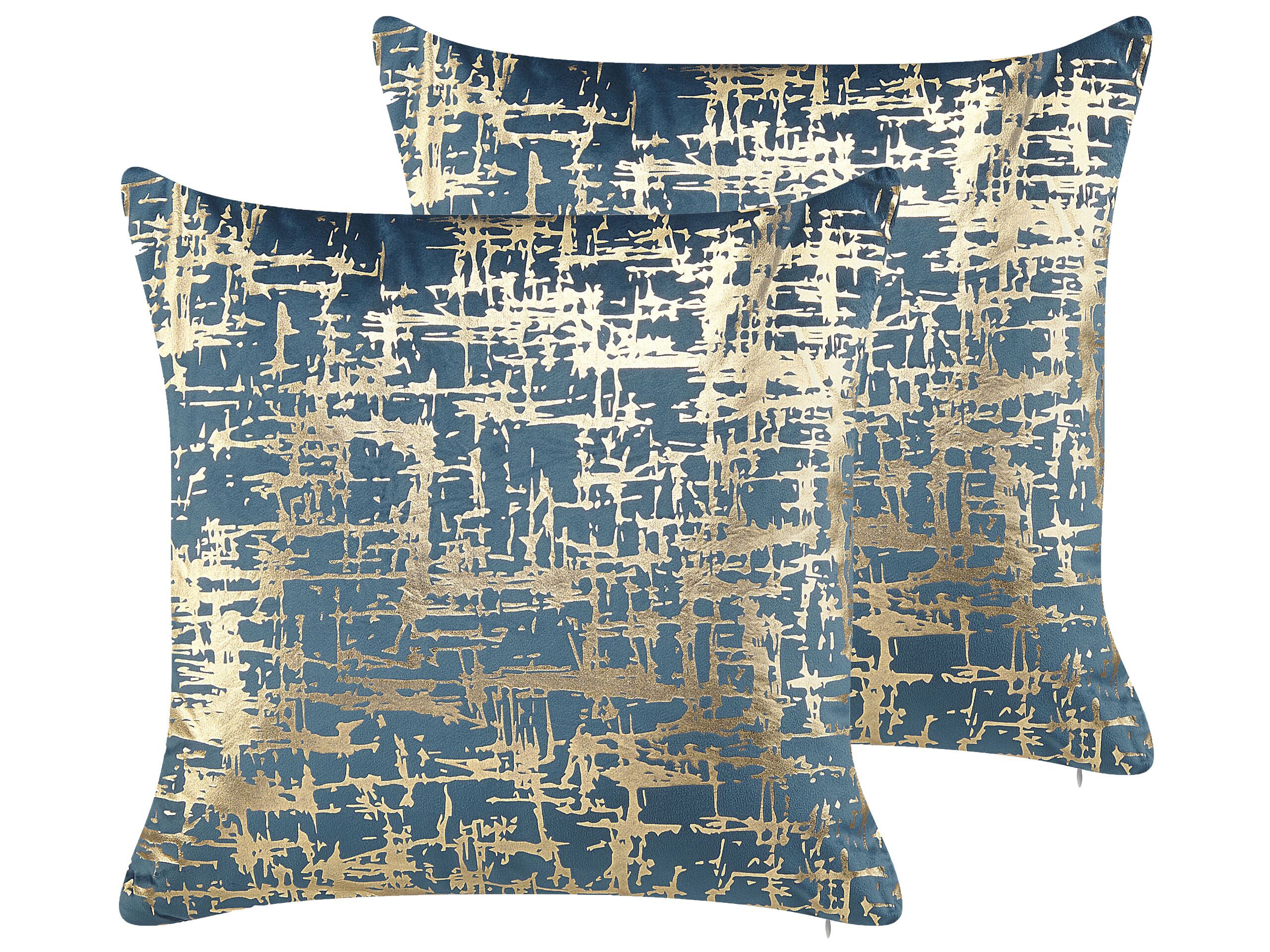 Set of 2 Cushions Crackle Pattern 45x45cm Blue and Gold