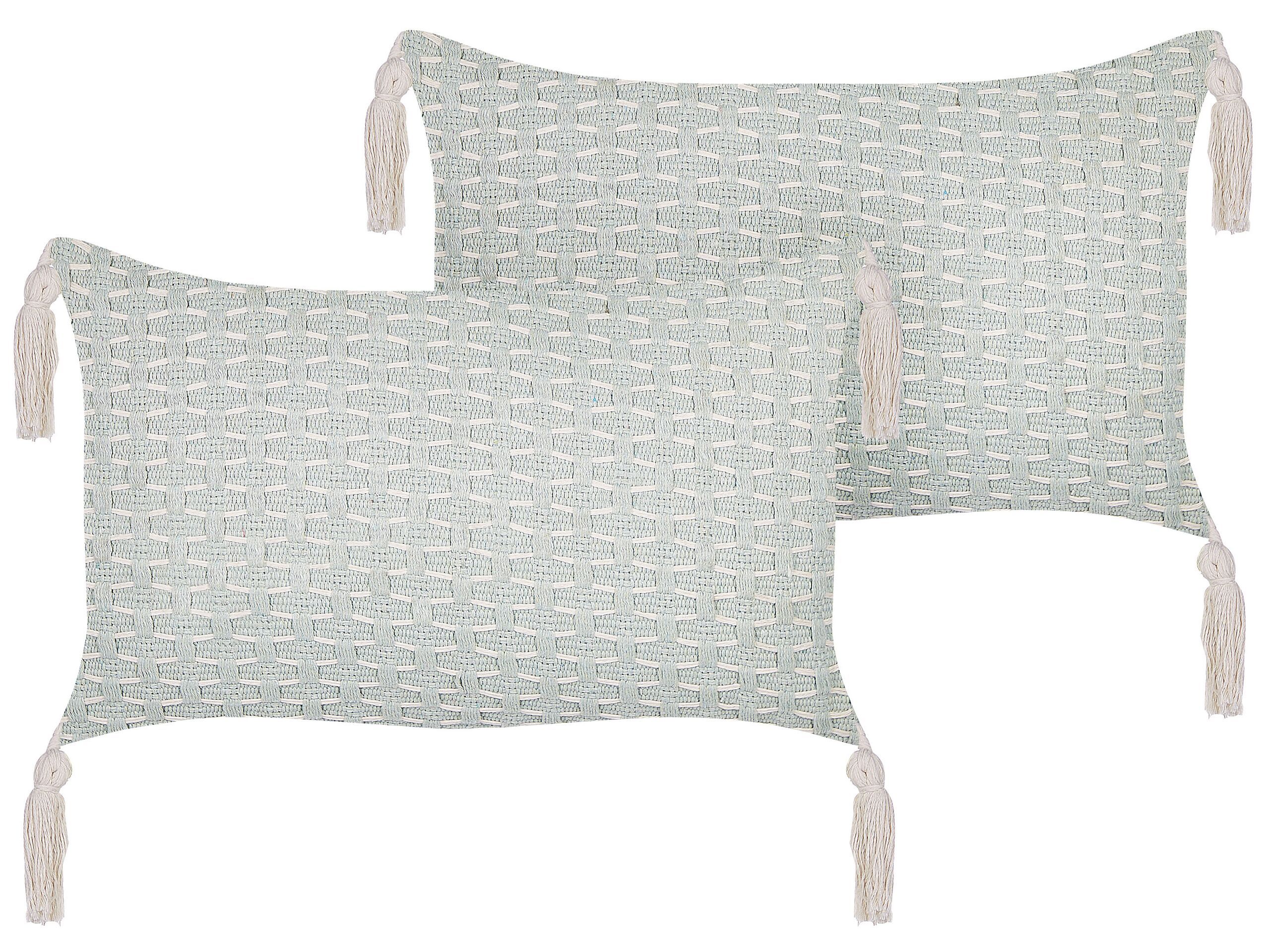 Set of 2 Cushions Geometric Pattern with Tassels 25x45cm Mint Green