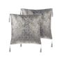 Set of 2 Cushions Geometric Pattern with Tassels 45x45cm Silver