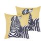 Set of 2 Decorative Cushions Zebra Motif 45x45cm Yellow