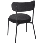 These chic dining chairs feature a black boucle fabric that provides a textured and cosy seating experience. The pieces are supported by sleek steel legs equipped with leg caps that will protect your floor from scraping. They are ideal for adding a touch of elegance and comfort to any kitchen or dining room.