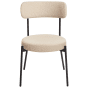 These chic dining chairs feature a beige boucle fabric that provides a textured and cosy seating experience. The pieces are supported by sleek steel legs equipped with leg caps that will protect your floor from scraping. They are ideal for adding a touch of elegance and comfort to any kitchen or dining room.