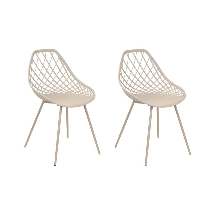 Create a comfortable dining area thanks to these splendid chairs in contemporary design. Boasting the classic net-style backrest and smooth seats, the chairs are made from easy-care, synthetic material. The metal legs guarantee stability and add a minimalist flair to the overall look of the chairs. Set them up with a matching table and enjoy dining in utter comfort. Details: Color: Beige. Main material: Synthetic Material. Additional material: Metal. Weight: 4 Assembly: Legs to be Fitted Weight Capacity: 150 Seat Height: 47