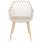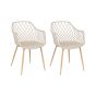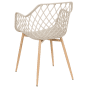 This set of chairs works wonderfully within any kitchen or dining room inspired by Scandinavian decor. The seat and the backrest are made from easy-care synthetic material, which retains its brand-new look for a long time. The modern net design is complemented by slender legs made from metal in a light wood finish, which adds a natural accent to the overall appeal of the chairs. Pair them up with a complementary table and enjoy dining in comfort. Details: Color: Beige, Light Wood. Main material: Synthetic Material. Additional material: Metal. Weight: 5 Assembly: Legs to be Fitted Weight Capacity: 150 Seat Height: 46