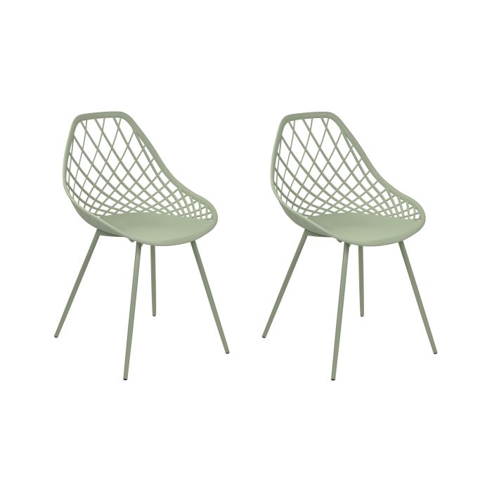 Create a comfortable dining area thanks to these splendid chairs in contemporary design. Boasting the classic net-style backrest and smooth seats, the chairs are made from easy-care, synthetic material. The metal legs guarantee stability and add a minimalist flair to the overall look of the chairs. Set them up with a matching table and enjoy dining in utter comfort. Details: Color: Green. Main material: Synthetic Material. Additional material: Metal. Weight: 4 Assembly: Legs to be Fitted Weight Capacity: 150 Seat Height: 47