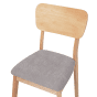 This set of two dining chairs combines classic comfort with modern aesthetics. Crafted from sturdy rubberwood in a light colour, these chairs are built to provide durability. The seats are upholstered in a light grey fabric in a neutral tone, blending seamlessly with a variety of dining room decors. The smooth, soft fabric ensures a comfortable seating experience, making these chairs perfect for long dinners or casual family meals.