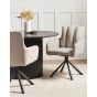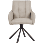 Upgrade your dining area with this chic set of two chairs, designed to combine style and functionality. Upholstered in durable and low-maintenance fabric, the chairs are thickly padded for exceptional comfort and include soft armrests for added support. The vertical quilting on the backrest adds an elegant touch, enhancing the overall design. Supported by sturdy black metal legs, these chairs also offer a practical 180-degree swivel function, making them a versatile addition to any interior.
