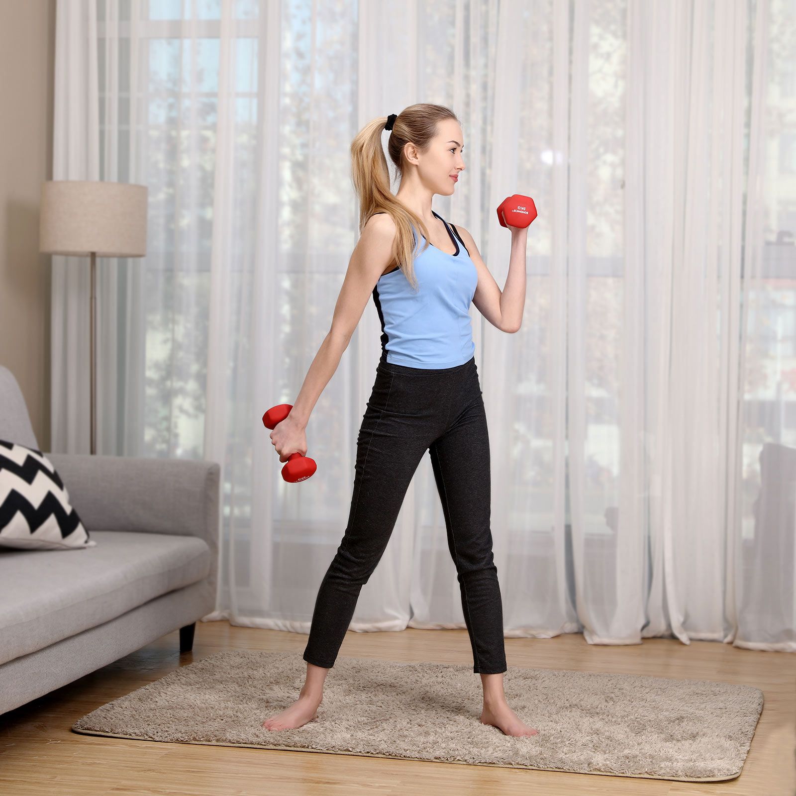 Weight: SYL61PK: 2 x 0.5 kg SYL62YL: 2 x 1 kg SYL63OG: 2 x 1.5 kg SYL64PL: 2 x 2 kg SYL66RD: 2 x 3 kg SYL68GN: 2 x 2 x 3 x SYL68GN: 2 x 4 kg SYLL. 65BU: 2 x 5 kg SYL60BK: 2 x 5 kg